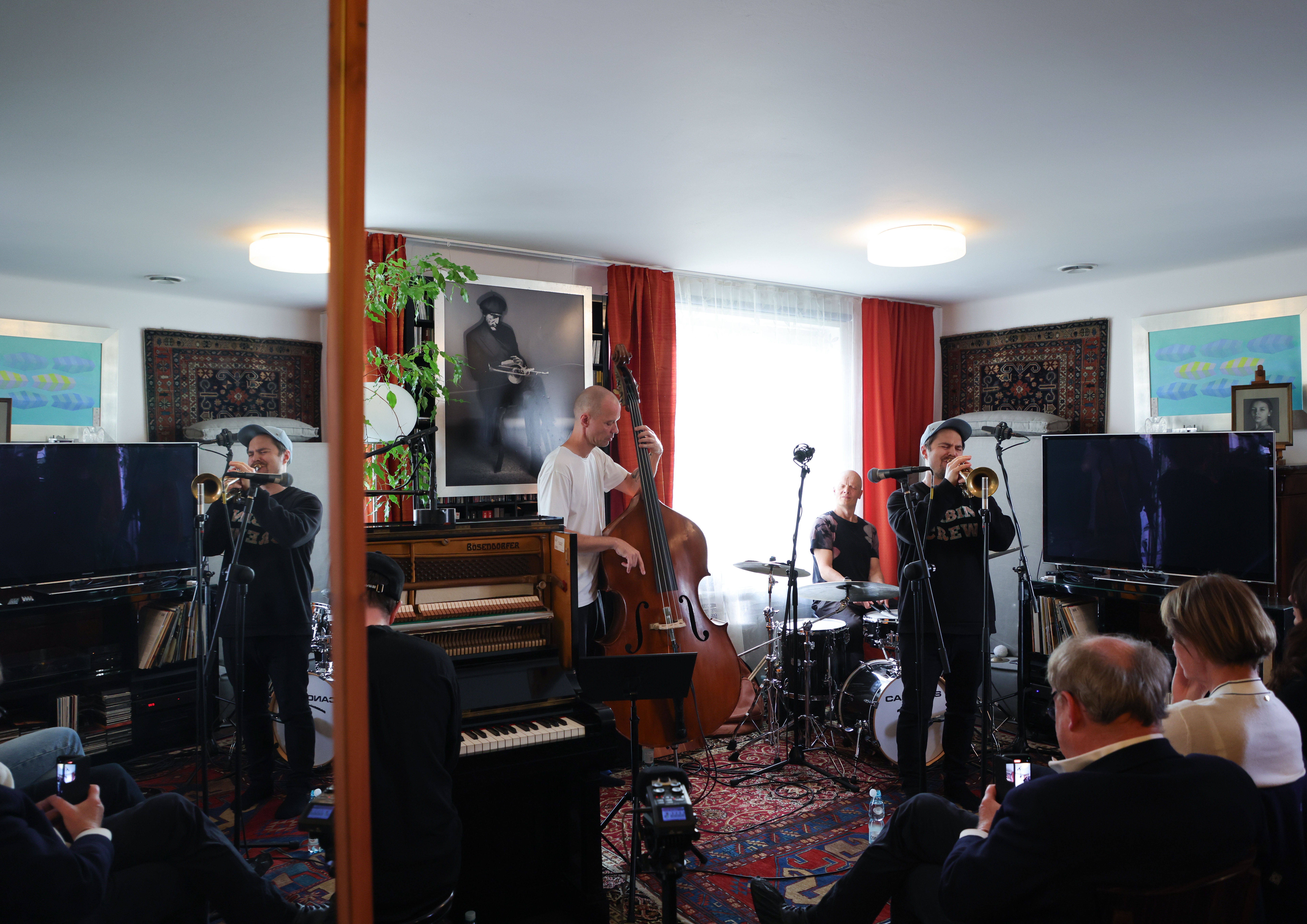 Mieszkanie Tomasza Stańko, w którym odbył się koncert, to miejsce niezwykłe – pełne roślin, antycznych dywanów, art deco i wspomnień. Zachowało ducha artysty i jego twórczej wolności. – Mieszkanie taty to przestrzeń pełna magii i historii – zarówno tej wielkiej, jak i zupełnie osobistej. Znajduje się tuż przy Skwerze jego imienia, który powstał na terenie dawnego ogródka jordanowskiego, gdzie chodziłam do zerówki i mieszkałam z tatą oraz babcią. To miejsce wróciło do miasta po latach, a teraz staje się naturalnym przedłużeniem mieszkania, w którym Stańko spędził dekady – opowiadała Anna Stańko, córka artysty i prezeska Fundacji Tomasza Stańko.