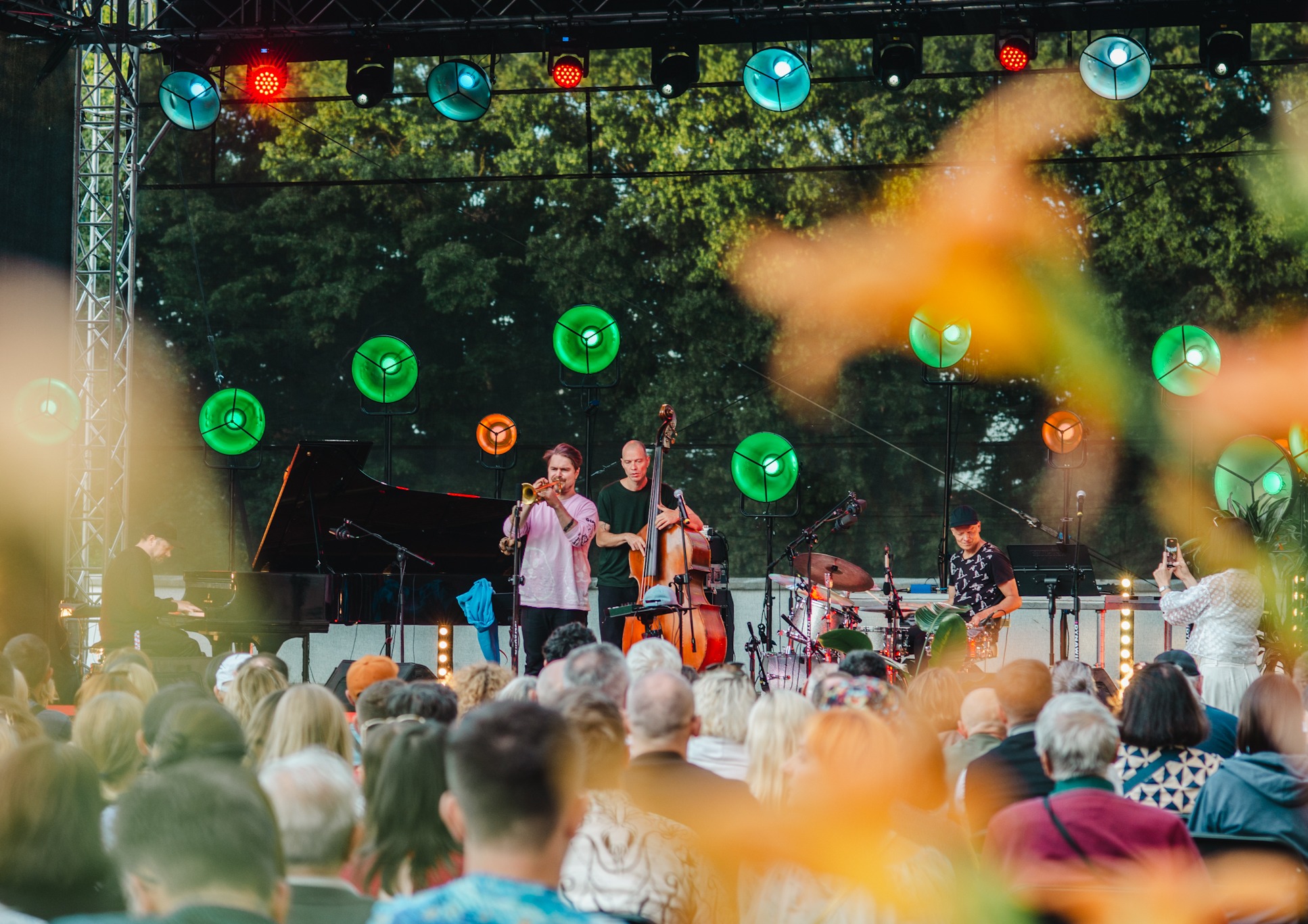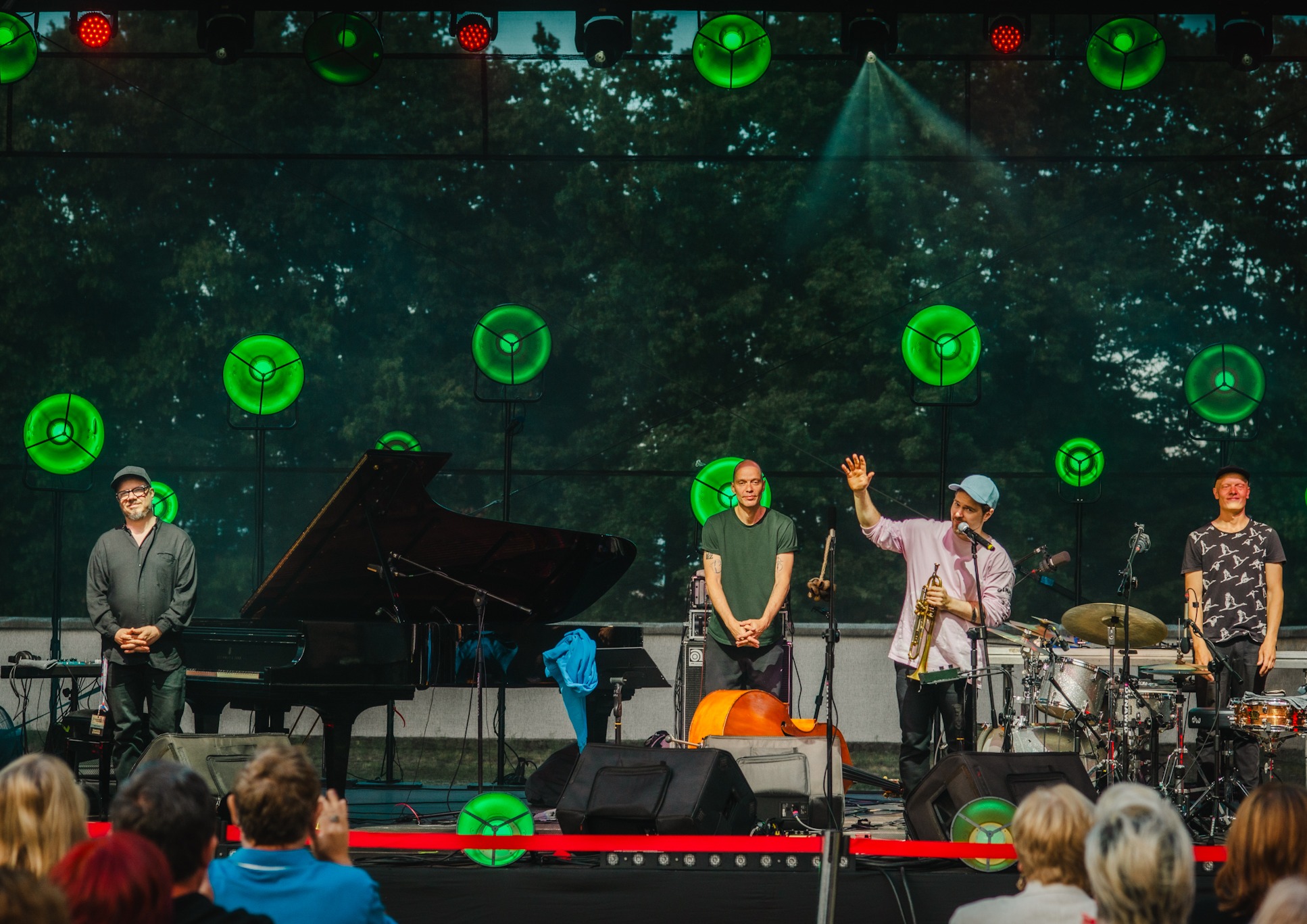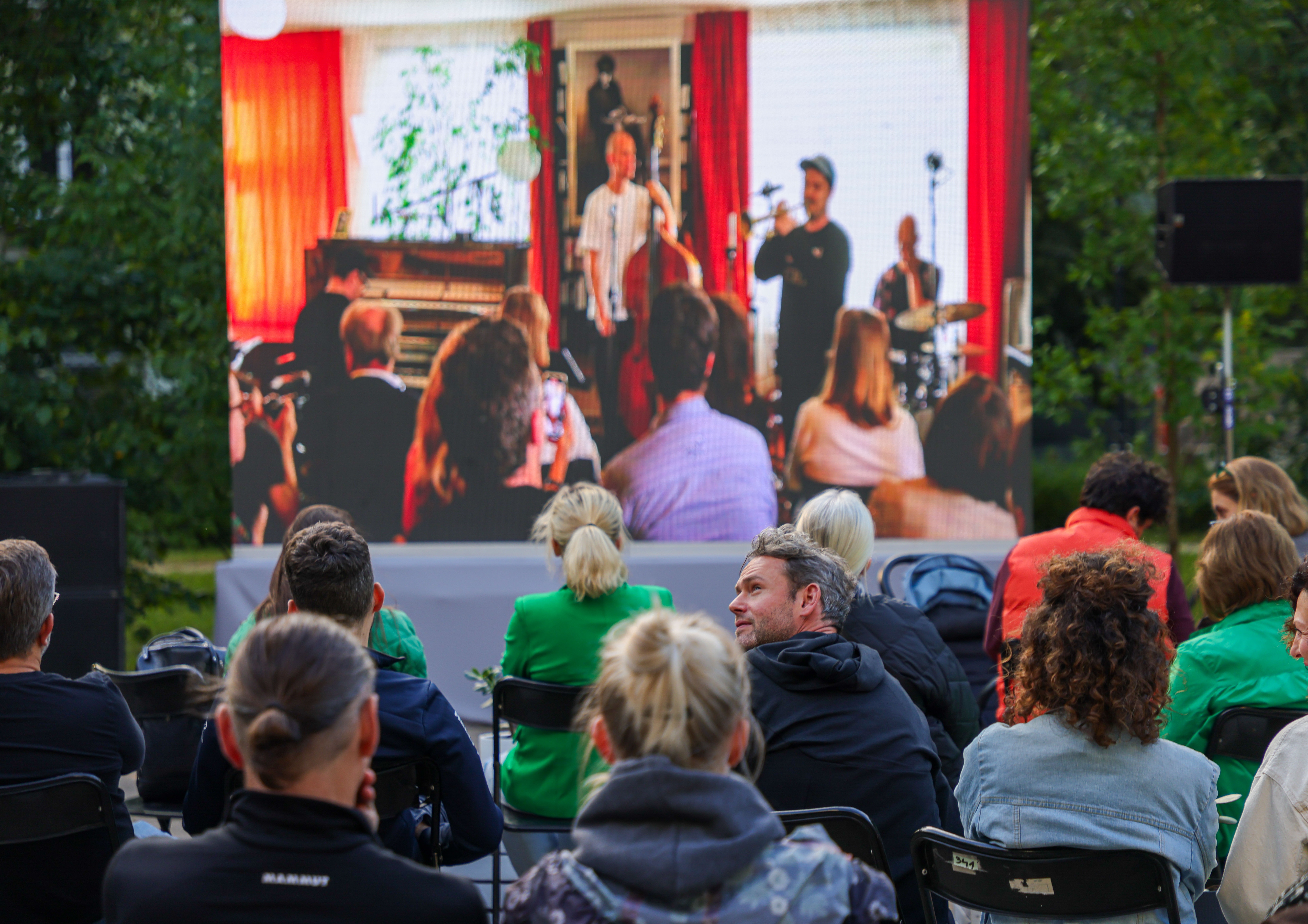 Na skwerze, wśród drzew i sąsiadów, którzy tłumnie przyszli świętować, ustawiliśmy telebim, na którym można było oglądać transmisję na żywo koncertu Verneri Pohjola Quartet prosto z mieszkania Tomasza Stańko. Fiński trębacz, uznawany za jednego z najciekawszych współczesnych głosów europejskiego jazzu, zaprezentował swój projekt „Monkey Mind” – album wyróżniony przez magazyn Jazzwise jako jedno z najważniejszych jazzowych wydawnictw 2024 roku.